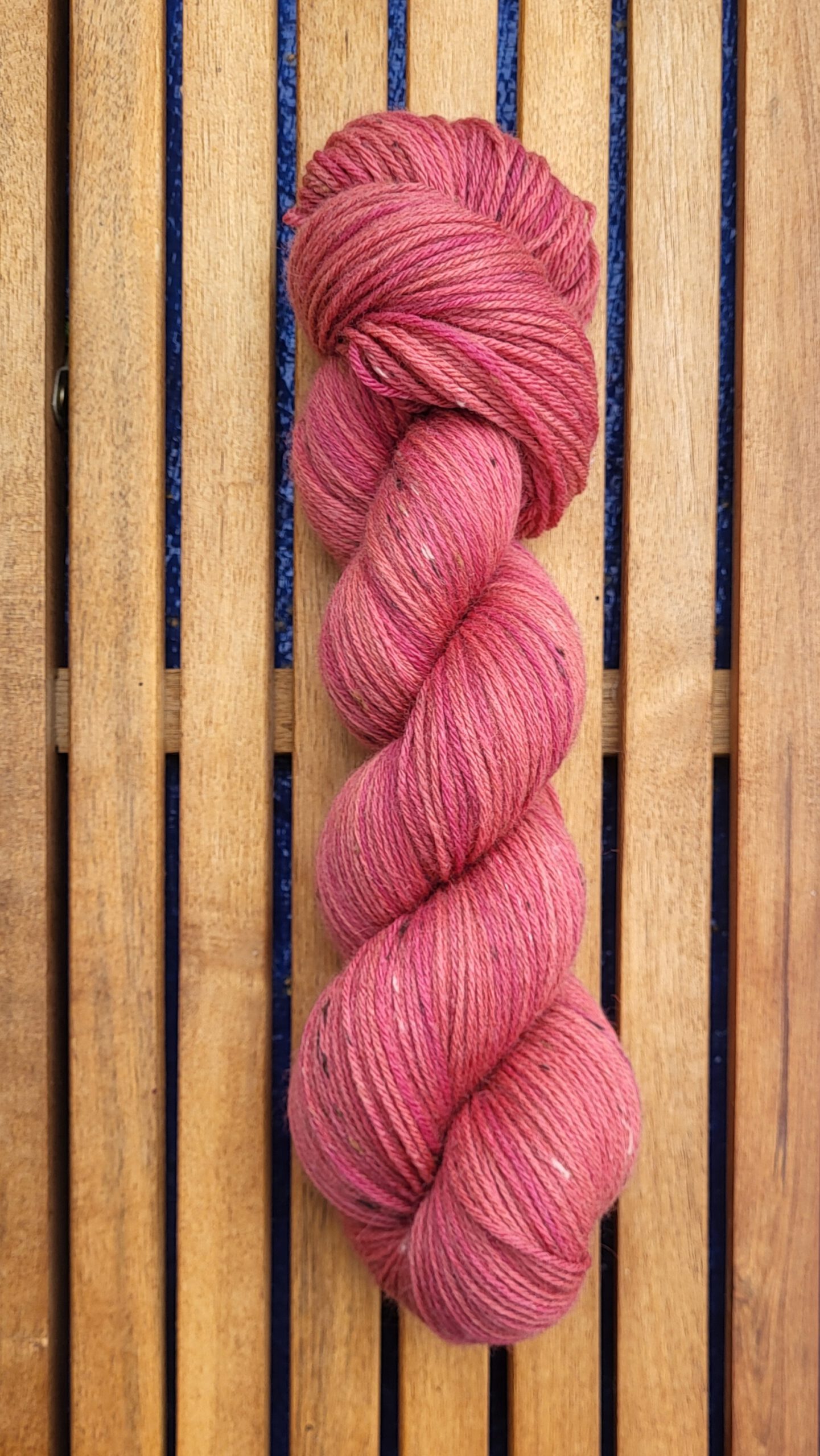 Mein Max ist ein wunderbar weiches Merinogarn, auf dem kleine Tweedstreußelchen in dunkelbraun wie fröhliche Sommersprossen auf warmer Sommehaut tanzen.