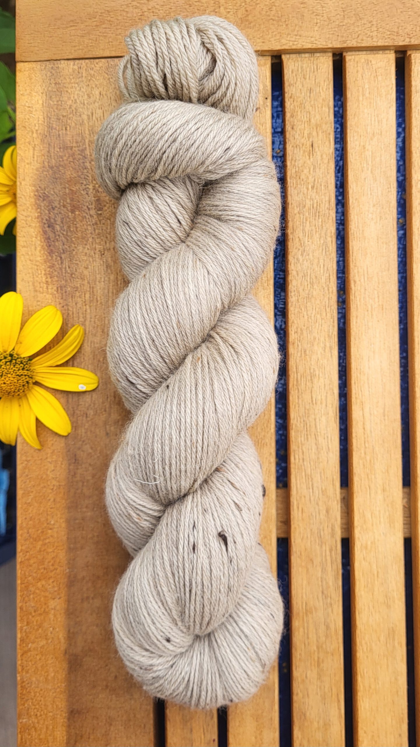 Mein Max ist ein wunderbar weiches Merinogarn, auf dem kleine Tweedstreußelchen in dunkelbraun wie fröhliche Sommersprossen auf warmer Sommehaut tanzen.
