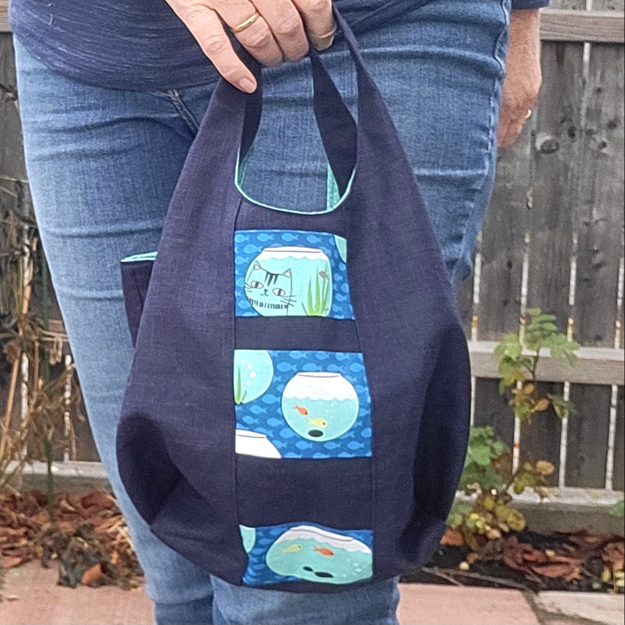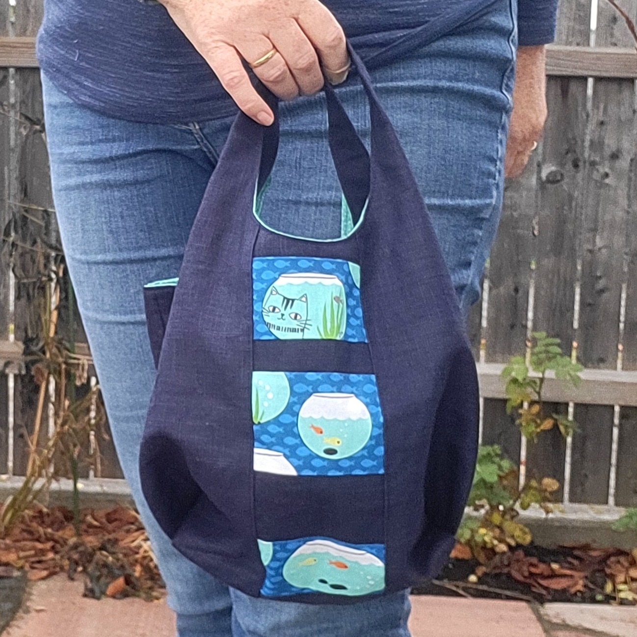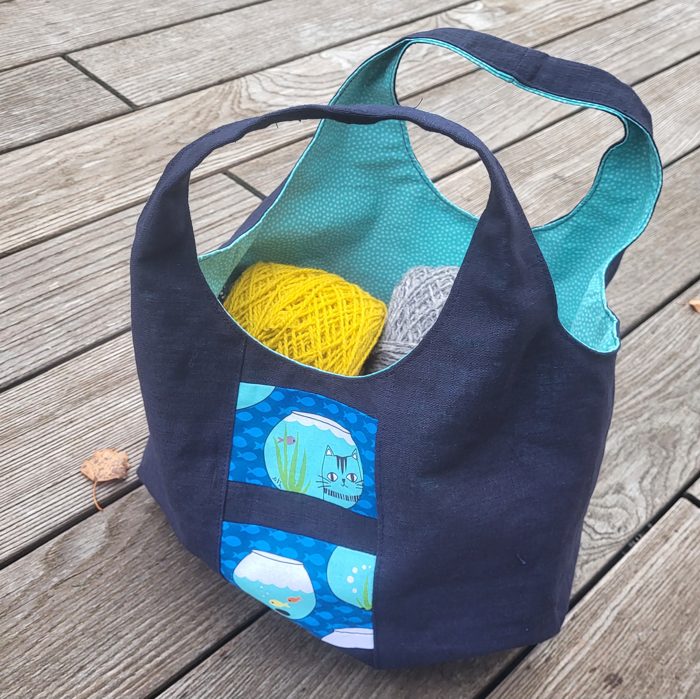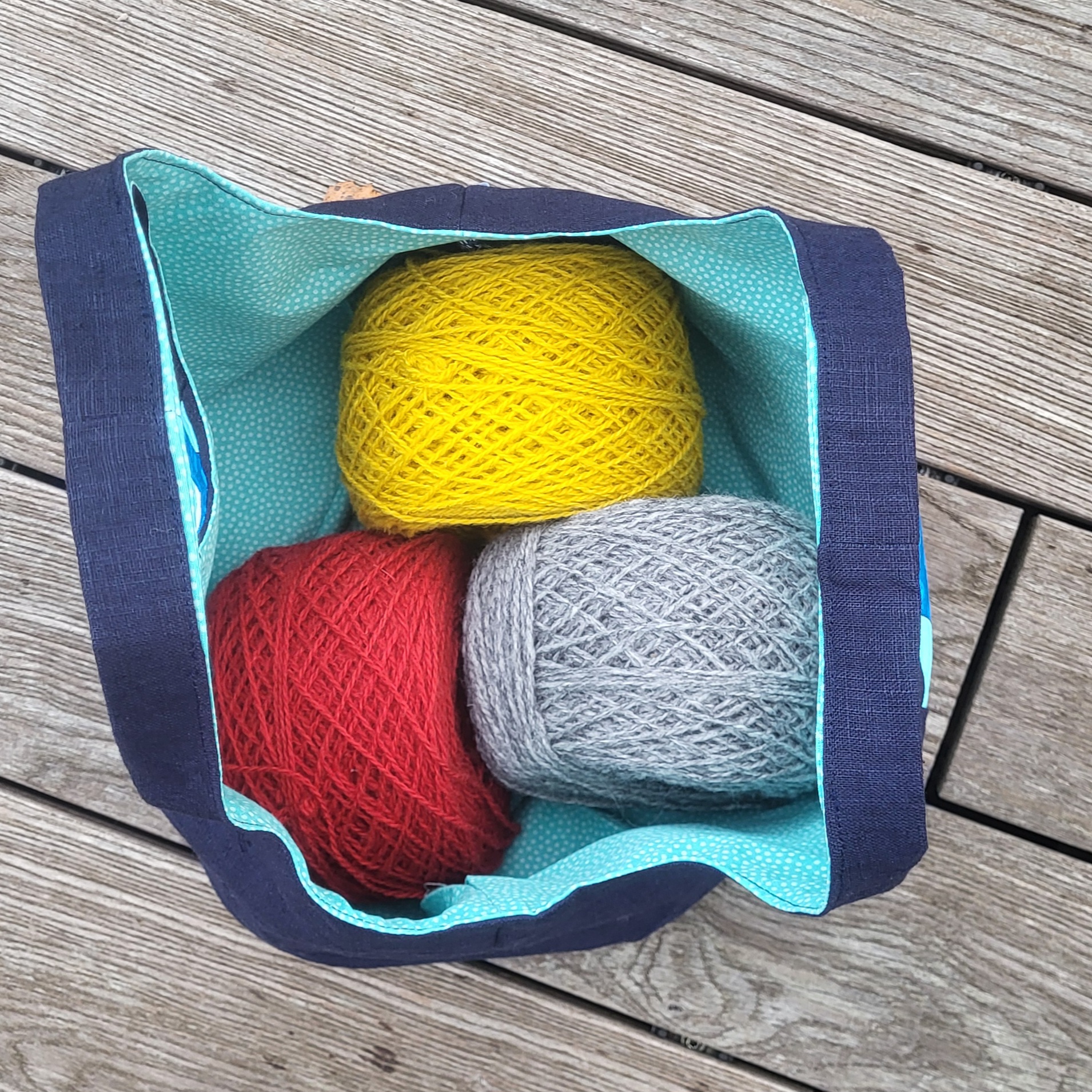 Die ボールバッグ ist eine kugelige Projettasche, die super geeignet ist um mindestens 600g Garn zu fassen.